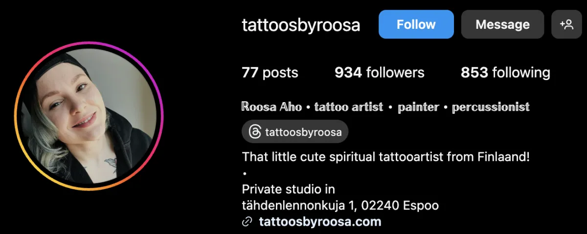 Roosa suuntaa tyyliään värirealismiin ja black’n’grey-tatuointeihin.